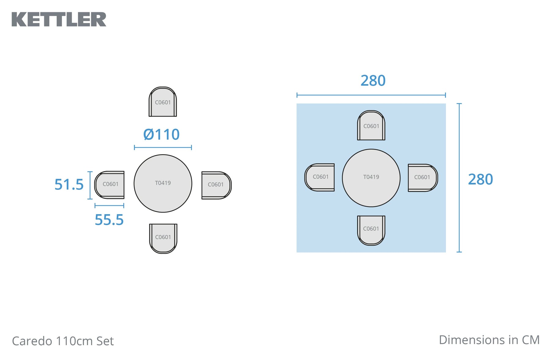 The Kettler Caredo 4 Seat Set Round Dining Set comes complete with: