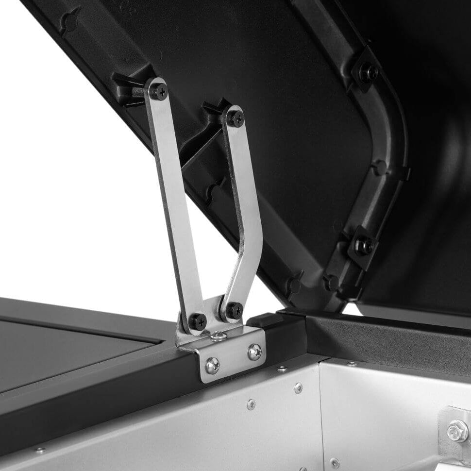 - Folding Side Shelves — space-saving with integrated tool hooks