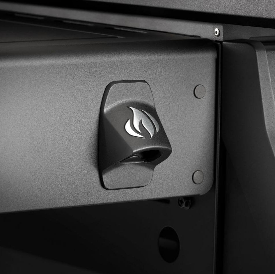 Designed for convenience, the Phantom 30 features folding side shelves with built-in tool hooks, an integrated caddy and prep station lid, and a front-access grease tray for mess-free cooking. The Lift Ease™ dual-pivot lid protects your cooktop when not in use, while white backlit control knobs add ambience and visibility. With four locking caster wheels, this portable cooking plate is easy to move and secure.