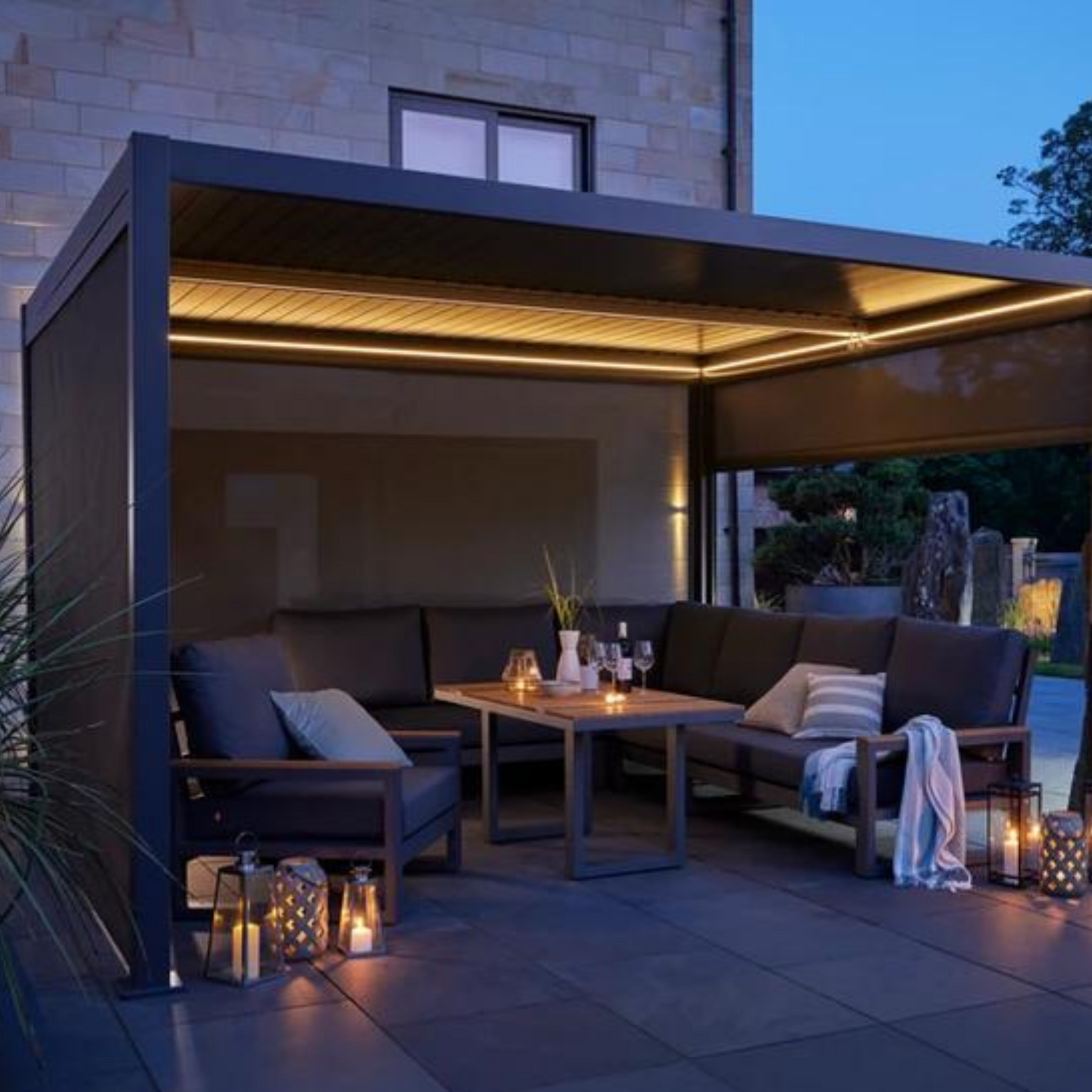 • VERSATILE: Manually operated double-skinned louvres allow versatile opening and closing, offering shelter from the elements.