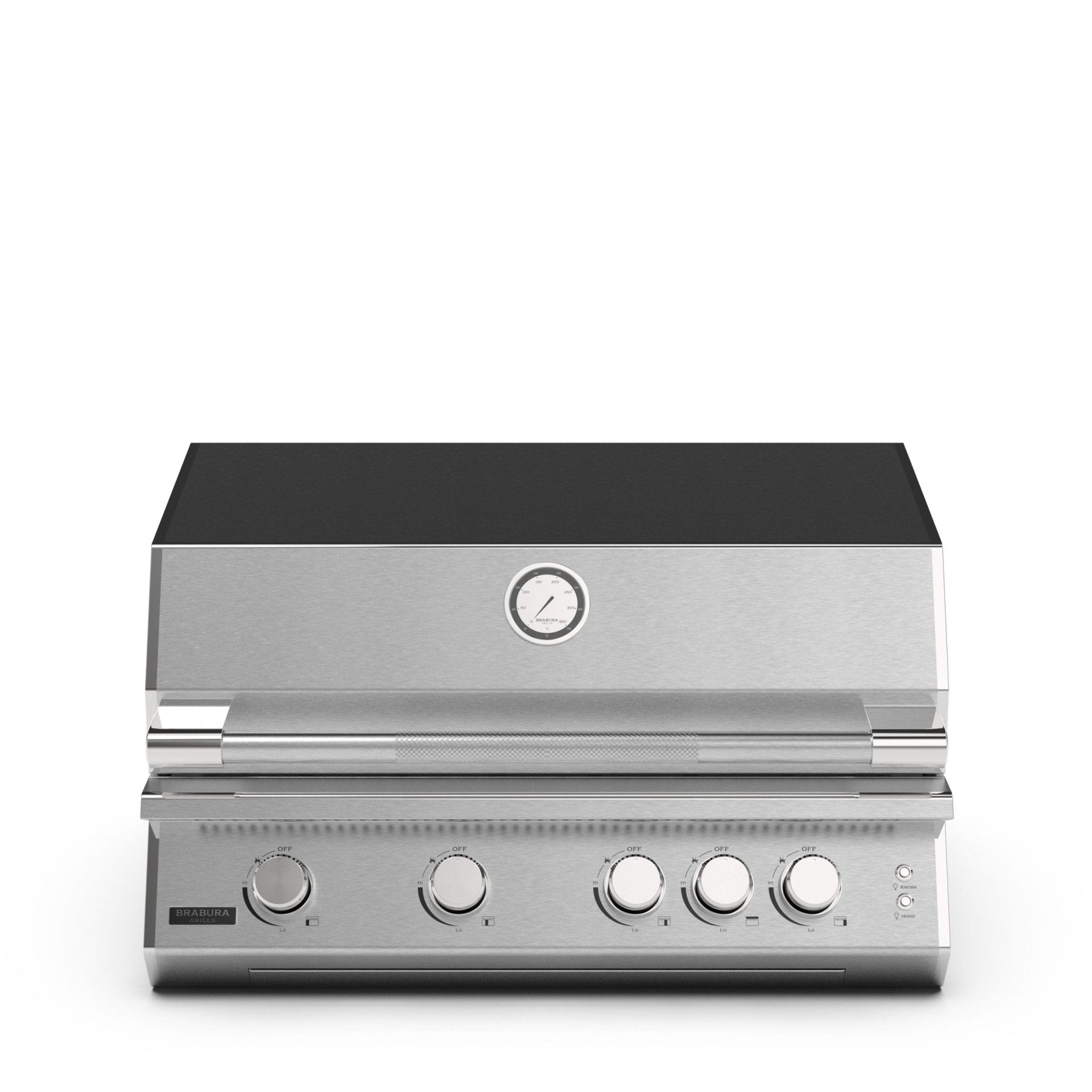 The Brabura Fusion 400 Built-In Grill boasts a 77x46cm cooking surface and 9mm stainless steel grates, perfect for cooking for 10-15 people. With a durable 304 stainless steel control panel, grill hood, and chassis, along with four powerful 4.1kW burners and a 2.95kW infrared rear burner, this grill provides a total power of 16.4kW. Keep your grilling area well lit with LED lit control knobs, available in orange or white. Choose from natural gas or propane and butane.